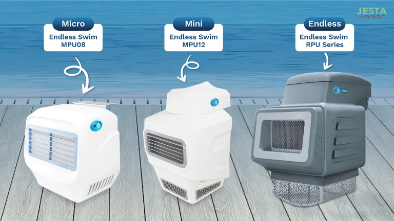 เครื่องว่ายทวนกระแส สามารถสร้างกระแสการไหลของน้ำได้อย่างต่อเนื่อง เหมาะสำหรับผู้ที่ชอบออกกำลังกายแต่สระว่ายน้ำมีขนาดที่จำกัด เพียงติดตั้งและแขวนไว้ข้างสระว่ายน้ำเท่านั้น อีกทั้งยังสามารถปรับความเร็วได้หลายระดับ เพื่อให้เหมาะสมกับความต้องการของผู้ใช้อีกด้วยและสำหรับน้องใหม่ของเราแบรนด์ JESTA
