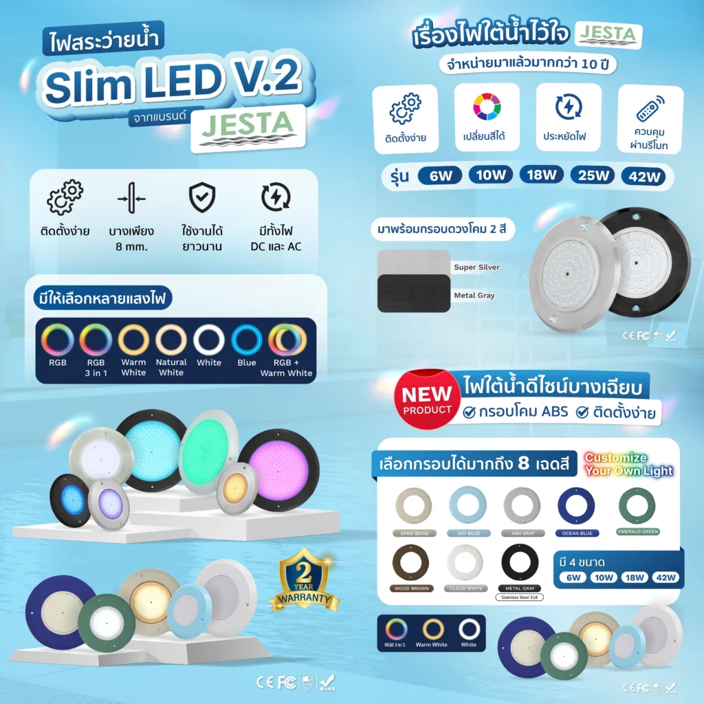 JESTA คือแบรนด์ผู้นำด้านไฟสระว่ายน้ำในประเทศไทย ที่ได้รับการยอมรับด้วยยอดขายกว่า 10,000 ดวง เรามอบโซลูชันแสงสว่างใต้น้ำที่ครบวงจร ด้วยนวัตกรรม LED ที่ทันสมัย ดีไซน์หลากหลาย และคุณภาพระดับสากล เพื่อให้สระว่ายน้ำของคุณสวยงาม โดดเด่น และปลอดภัยในทุกยามค่ำคืน